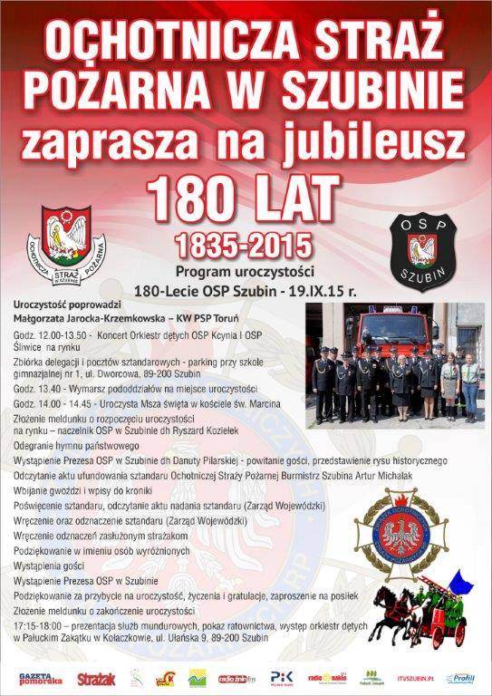 Ochotnicza Straż Pożarna w Szubinie zaprasza na 180 – Lecie.