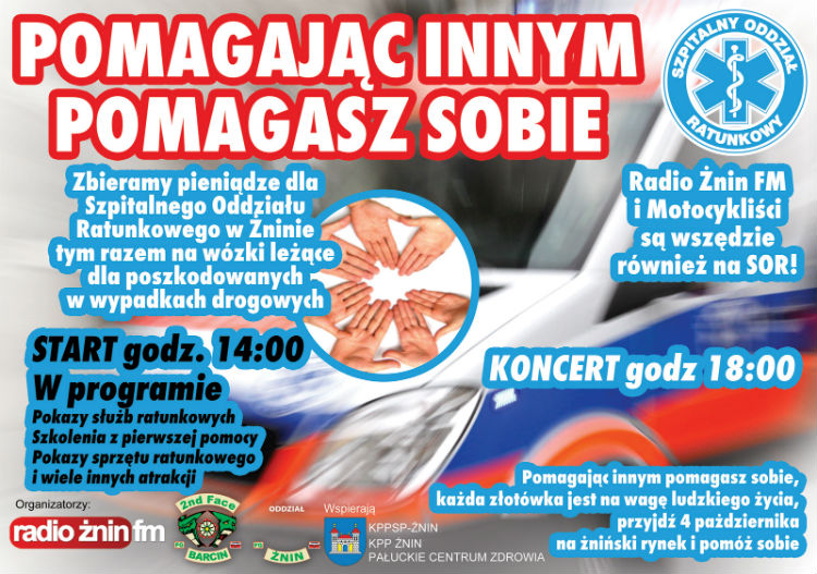Już w najbliższą sobotę, na żnińskim rynku odbędzie się akcja pod hasłem 'Pomagając innym pomagasz sobie”. W tym roku w akcję zaangażowani są: Szpitalny Oddział Ratunkowy w Żninie, KPP w Żninie oraz KPPSP w Żninie.