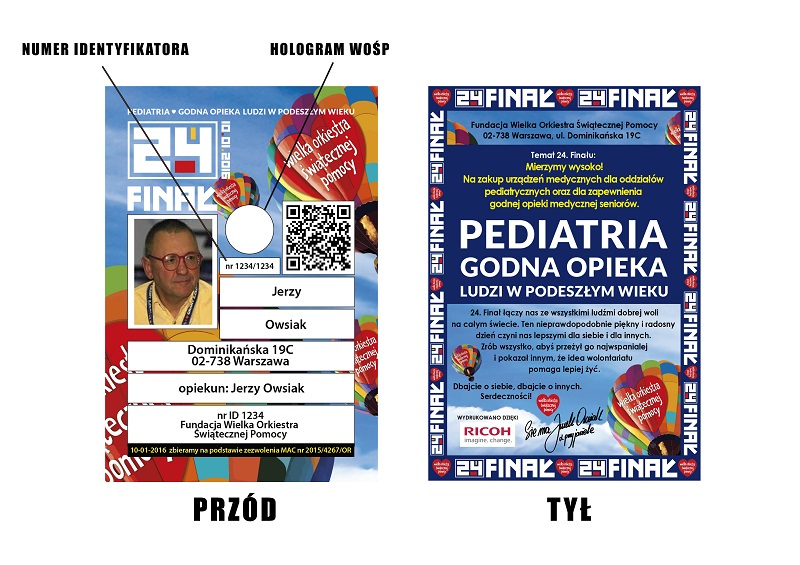 Tak powinien wyglądać identyfikator i puszka wolontariusza, który bierze udział w tegorocznym finale Wielkiej Orkiestry Świąteczenej Pomocy: