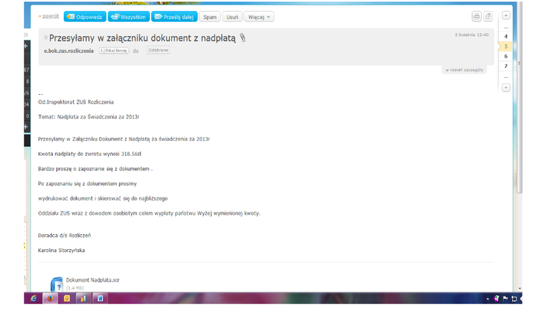 Czytaj więcej: Niebezpieczne maile - rzekomo od ZUSu. Nie wolno ściągać załączników