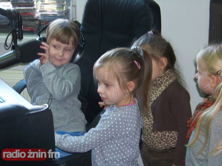 Dziś w studiu Radia Żnin FM gościliśmy naszych najmłodszych słuchaczy, którzy przyjechali do nas z Szubina. Były to dzieci z Przedszkola "Słoneczko", grupa Pszczółek i Zuchów. Goście z zaciekawieniem słuchali Magdy Borowskiej, która oprowadzała ich po Radiu. W Studiu Emisyjnym dowiedziały się czym jest konsoleta, do czego służy program emisyjny i czym jest hybryda. W Studiu Produkcyjnym przedszkolaki miały możliwość nagrania pozdrowień.