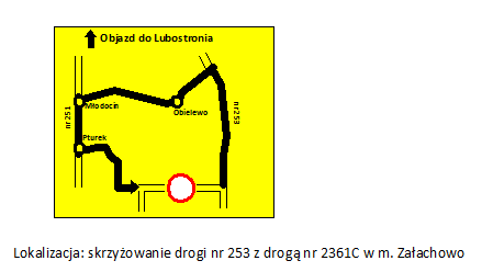 Pierwszy objazd rozpoczyna się na skrzyżowaniu z droga 253 z drogą nr 2361C w Załachowie i prowadzi przez Obielewo, Młodocin i Pturek. Drugi rozpoczyna się w Murczynie i prowadzi przez Murczym, Młodocin i Pturek.
