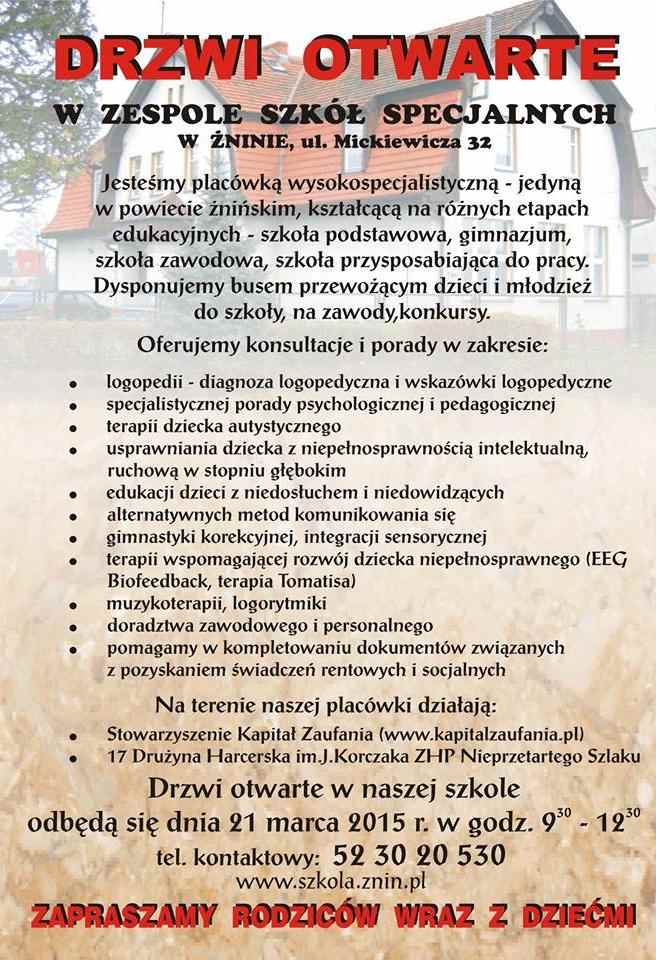 W najbliższą sobotę swoje drzwi dla przyszłych uczniów otworzy Zespół Szkół Specjalnych nr 4 w Żninie.