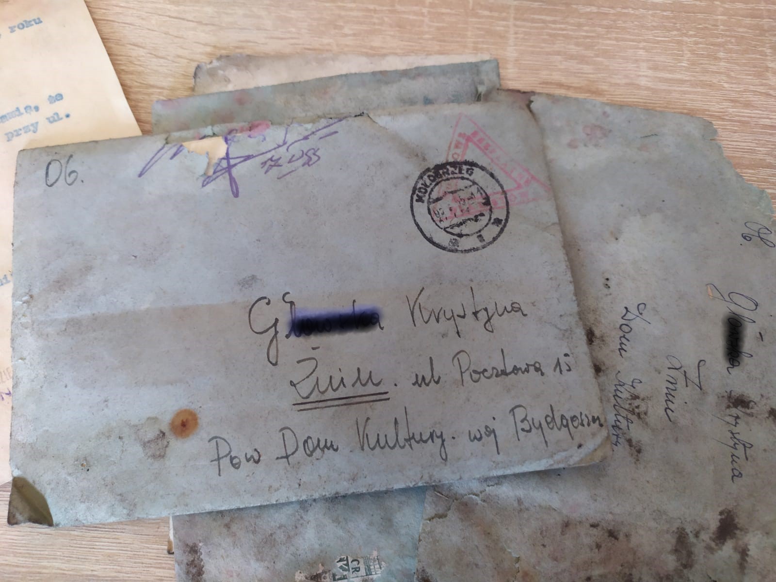 Poszukanie odpowiedzi na pytania są teraz zadaniem pracowników Żnińskiego Domu Kultury, gdzie pod progiem w trakcie wymiany drzwi odnaleziona została korespondencja sprzed blisko 70 lat. Na nadgryzione zębem czasu koperty natrafili pracownicy firmy, wykonujący remont.