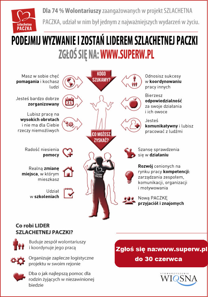 Szlachetna Paczka to również szansa na sprawdzenie samego siebie w działaniu i poznanie nowych ludzi. Ale to również pomoc tym, którzy jej potrzebują, nie gdzieś daleko ale we własnej społeczności, we własnym mieście, na własnym podwórku. Wciąż poszukiwani są liderzy między innymi w Żninie, Mogilnie i Szubinie.