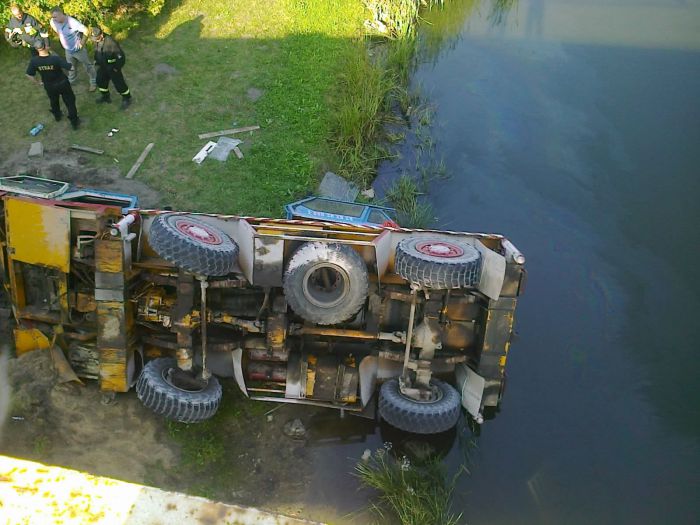 W Barcinie z mostu na Noteci spadł samochód ciężarowy,który przewoził dźwig typu „żuraw”. Taką informację otrzymaliśmy od naszego słuchacza na profilu na facebooku Radia Żnin FM. Maszyna waży 10 ton. Cztery zastępy straży pożarnej i policjanci pracują na miejscu zdarzenia. Samochód z ładunkiem spadł na skarpę. Na miejscu jest starszy aspirant Marek Krygier, rzecznik prasowy Komendanta Powiatowej Państwowej Straży Pożarnej w Żninie.