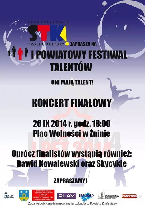 W konkursie można zaprezentować talenty i zdolności wszelkiego rodzaju, od plastycznych, przez wokalne i taneczne, po niekonwencjonalne, wyjątkowe. Uczestnicy prezentują swoje umiejętności przed jury festiwalu, w którego skład wchodzą członkowie Stowarzyszenia, przedstawiciele placówek kulturalnych oraz mediów lokalnych, a następnie oceniani są przez publiczność. W festiwalu można brać udział indywidualnie lub w zespołach, a co najważniejsze, nie ma żadnych ograniczeń wiekowych. Konkurs przebiega w trzech etapach. Pierwszy z nich odbywał się w Barcinie, Łabiszynie, Żninie i Janowcu Wlkp. Podczas castingów jury zakwalifikowało do półfinału 23 uczestników. Drugi etap odbył się w I Liceum Ogólnokształcącym im. Braci Śniadeckich w Żninie. Tym razem jury wyłoniło 10 najlepszych, którzy zaprezentują się w finale. Wśród nich są zespoły muzyczne, wokaliści, tancerze i gitarzysta. Laureatów wyłoni jury oraz publiczność w głosowaniu smsowym. Linia SMS-owa zostanie zamknięta po występie wszystkich finalistów zostanie zamknięta (około godziny 20:30). Werdykt zostanie podany po podliczeniu głosów. Występy finałowe uświetnią koncerty Dawida Kowalewskiego oraz zespołu Skycykle.
