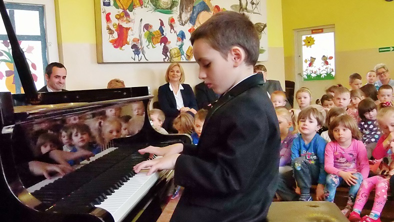 Wyjątkowego koncertu, w wykonaniu niezwykle utalentowanego mieszkańca naszego miasta wysłuchały dziś dzieci uczęszczające do Przedszkola Miejskiego nr 1 im. Marii Konopnickiej w Żninie.