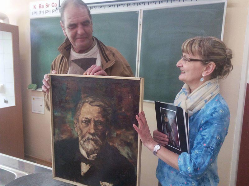 Obraz przestawiający francuskiego chemika i ojca mikrobiologii Ludwika Pasteura autorstwa rogowskiego artysty Jerzego Marosza od dziś zdobi salę chemiczną Zespołu Szkół Ekonomiczno-Handlowych w Żninie.